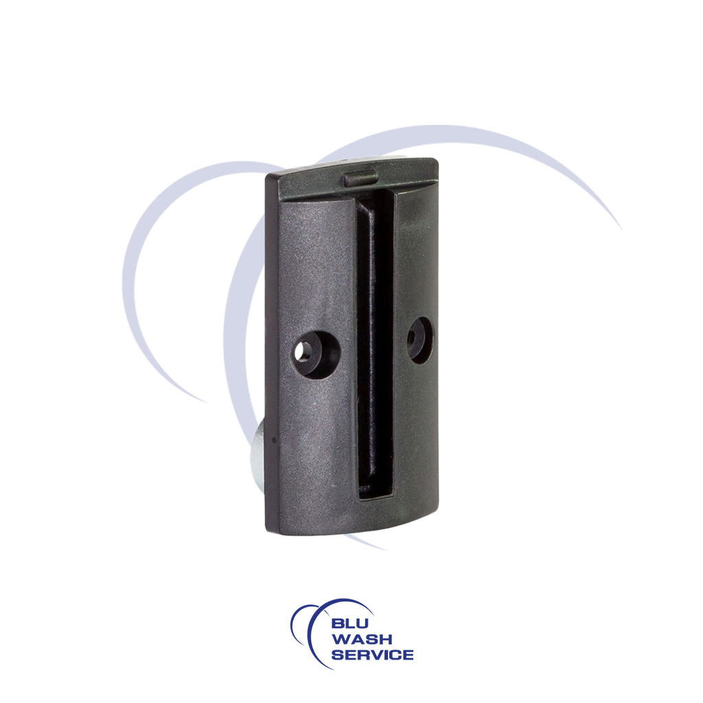 Piastra di fissaggio nera progettata per cinture da 50mm. Permette il montaggio a parete di sistemi di barrieramento con cinghie, ideale per interni ed esterni.